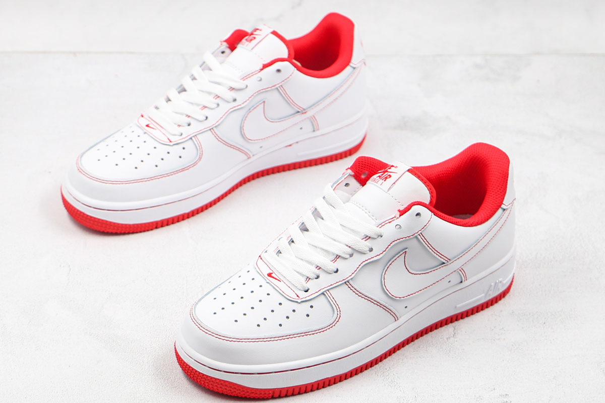 The Nike Air Force 1 Low ‘07 “Contrast Stitch – White/Red” gives a subtle update to the classic “White on White” colorway of the retro basketball and lifestyle silhouette. One of several colorways in the Air Force 1’s “Contrast Stitch” collection, the “White/Red” is an essential footwear option for any sneaker collection. White leather appears on the perforated toe, mid-panel, and heel.