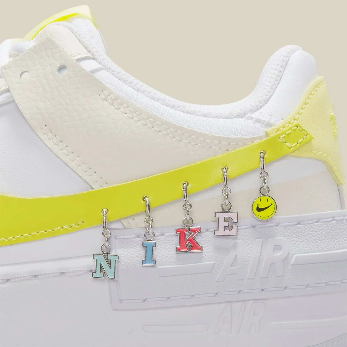 This time, sitting on top of a smooth white leather base, we have tumbled leather overlays sit in a light yellow hue. Brighter accents of yellow dress up the tongue tab, Swoosh profiles and branding on the heel. However, the cutest detail is the pretty lil Nike decorations coming off the Swoosh for a sassy little addition. Rounding things off nicely we have that chunky sole unit, coming super-fresh in white!