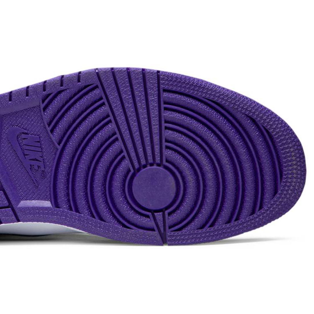 The Air Jordan 1 ??Court Purple?? features a positively regal colour scheme as part of Jordan Brand??s continuous efforts in producing coveted non-original Jordan 1 colourways. The Air Jordan 1 ??Court Purple?? uses a familiar formula in the line??s design history, as purple leather overlays across the upper contrast a clean white leather base. A black Swoosh hit on the mid-panel and black Wings logo on the collar are standard-issue Jordan 1 design elements. Jordan Brand completes the look with a white midsole and Court Purple outsole. Release date: April 2020.