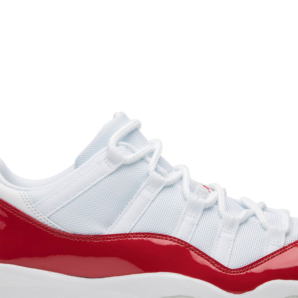 Air Jordan 11 Retro Low cherry from Jordan are a sweet offering for your sneaker collection. In June of 2016, the Air Jordan 11 Retro Low ‘Cherry’ got its first retro release. Originally dropped in 2001 alongside the Air Jordan 11 Retro Low ‘Columbia,’ the sneaker combines a white mesh upper with varsity red patent leather overlays, and an ice-white translucent outsole.