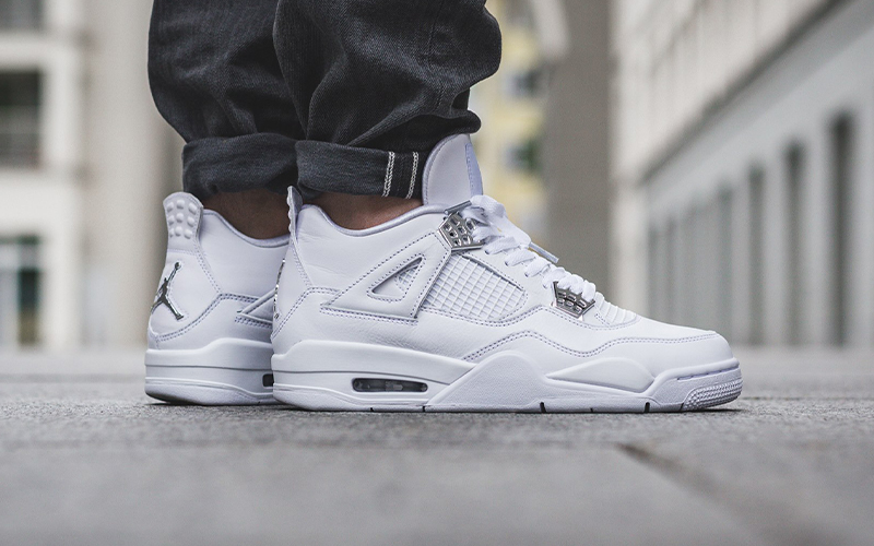 Released in May of 2017, the Air Jordan 4 Retro ‘Pure Money’ 2017 features a white leather upper with a white rubber sole. First introduced back in 2006, this 2017 version of the colorway also features chrome eyelets, a chrome Jumpman on the heel, and ‘Pure$’ on the inside of the back tabs.