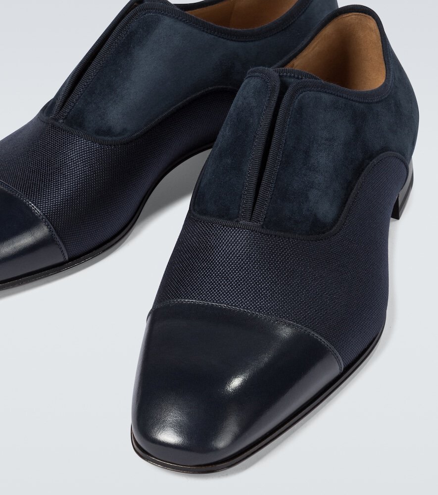 The Alpha Male Flat offers a modern alternative to the classic lace-up. With its pure, clean lines, this versatile slip-on shoe is a must for contemporary dressing. The upper on this all-over navy version is meticulously crafted from a technical Nylon Silky and the Maison’s proprietary veau velours. A tone-on-tone grosgrain trim emphasizes the shoe's construction, while the glossy Calf Patiné leather toe cap adds a striking, masculine twist.