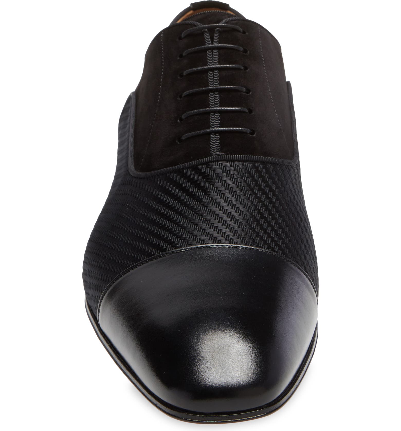 A tonal jacquard panel disrupts the dapper look of this grosgrain-trimmed oxford, adding a dash of unexpected edge and texture to the Italian style.
