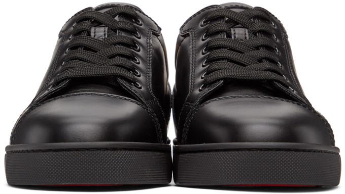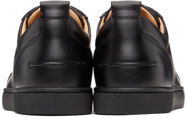 Leather--Low-top buffed calfskin sneakers in black. Round toe. Tonal lace-up closure. Padded tongue and collar. Pull-loop at heel collar. Eyelets at inner side. Tonal textured rubber midsole. Signature red rubber outsole. Tonal hardware.
