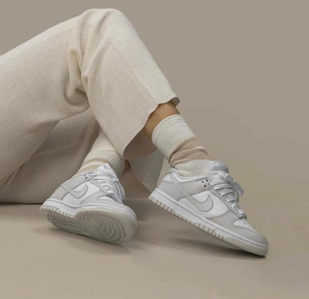 The Nike Dunk Low “Grey Fog” is a two-tone, white-and-grey colorway of the low-top sneaker that is perfect for styling multiple ways. The “Grey Fog” edition of the Dunk mimics the shoe’s original two-tone style that was popularized by the “Be True to Your School” collection of college basketball-inspired colorways released by Nike in 1985. The upper features white leather on the perforated toe, mid-panel, collar, and heel. Both the overlay panels and Swoosh branding appear in Grey Fog leather. On the back, white “Nike” branding gives the shoe a retro appearance. Classic “Nike” and Swoosh detailing appears on the tongue tag.