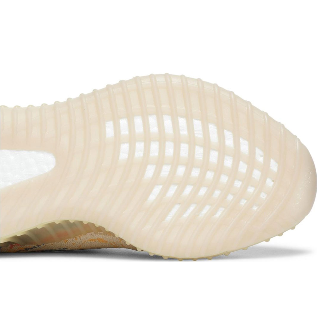The “MX Oat” option is one of the most eye-catching YEEZYs to date, donning a yellowish Primeknit upper complemented by a plethora of disparate tones. Hits of orange and navy appear in contoured style from tip of the toe to spine, where a different shade of yellow comes into play. The semi-transparent stripe on the lateral side interrupts the melted crayon-reminiscent streaks, but it doesn’t steal the spotlight given its lack of distinct color. Unlike many of the most recent YEEZY 350 V2 drops, the upcoming pair boasts a pull tab at the heel. Underfoot, the ribbed midsole gives way to the all-white BOOST-cushioning that’s further cemented the foam’s place among countless footwear rotations across the world.
