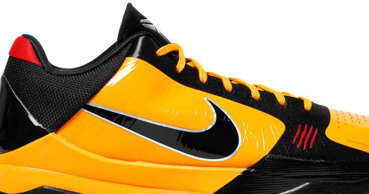 The Nike Kobe 5 Protro “Bruce Lee” is a Winter 2020 release of Kobe Bryant’s fifth signature shoe with Nike Basketball that pays homage to the equally legendary martial artist. The “Bruce Lee” theme is inspired by the iconic yellow and black jumpsuit Lee wore in the film “Game of Death” in 1978. The upper features a yellow perforated toe and mid-panel with contrasting black overlays on the forefoot and eyelets. Black mesh detailing can be found on the padded collar and on the top half of the heel. The rest of the back of the shoe displays a black TPU clip with Bryant’s signature in red text. Other details include a black Swoosh with silver outlining on either side, yellow shoe laces against a black mesh tongue with Bryant’s “The Sheath” logo on the top of the design.